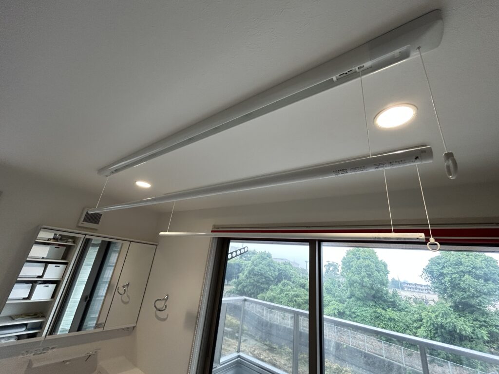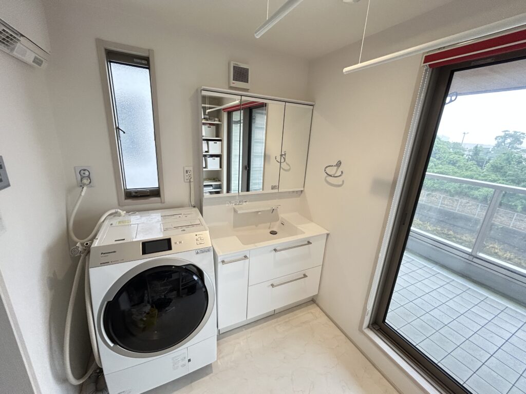 ◆洗面スペースに部屋干しできるホスクリーン完備♪