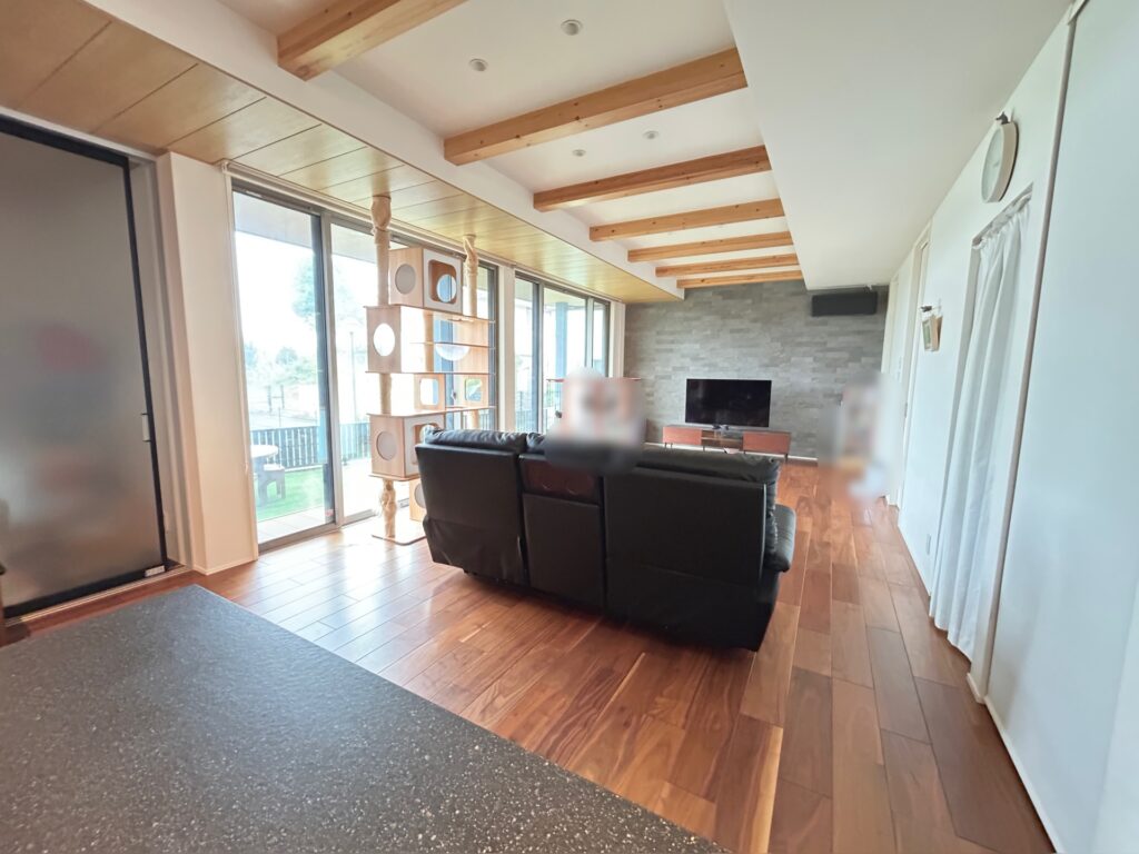 ◆リビングは天井の見せ梁で部屋が広く見えます♪