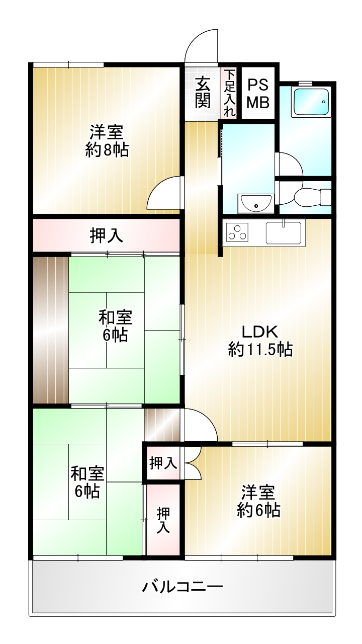 福岡県福岡市南区長丘長丘コーポ A棟 4LDK