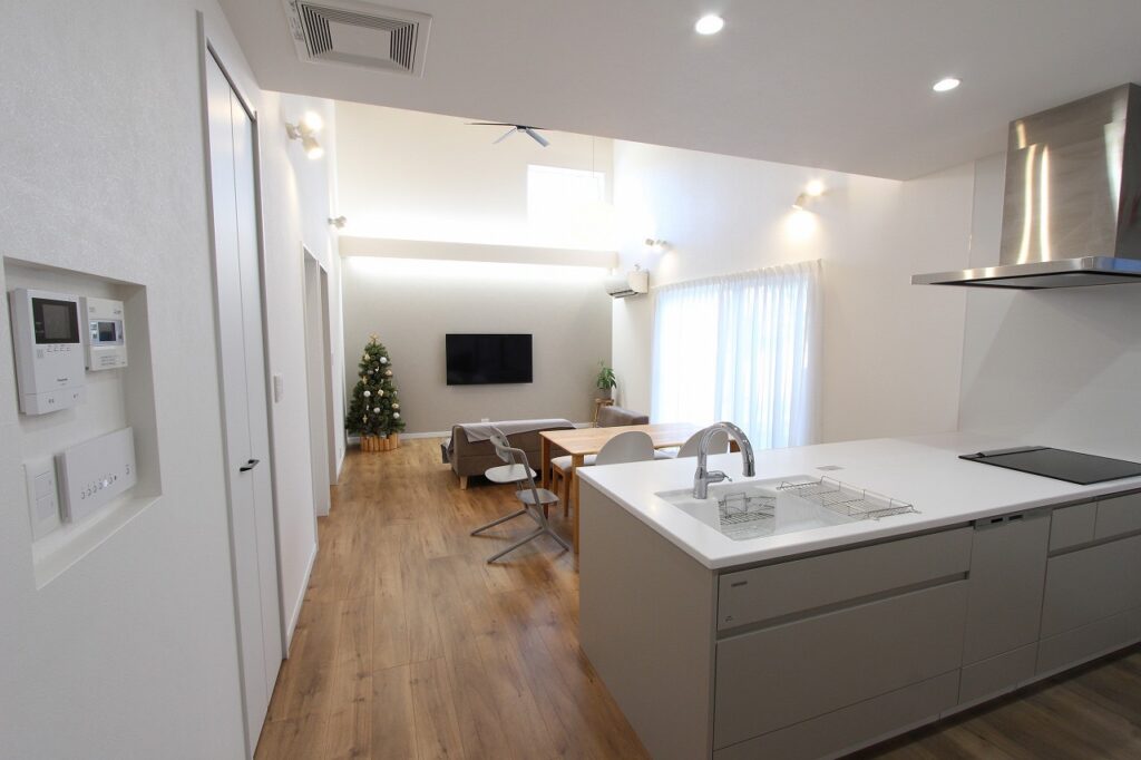 - 電気 上水道 下水道 追焚機能 トイレ2箇所 温水洗浄便座 システムキッチン 食器洗浄乾燥機 IHクッキングヒーター 浴室乾燥機 複層ガラス 24時間換気システム オール電化 カードキー リビング吹き抜け 電動シャッター ウォークインクローゼット SIC