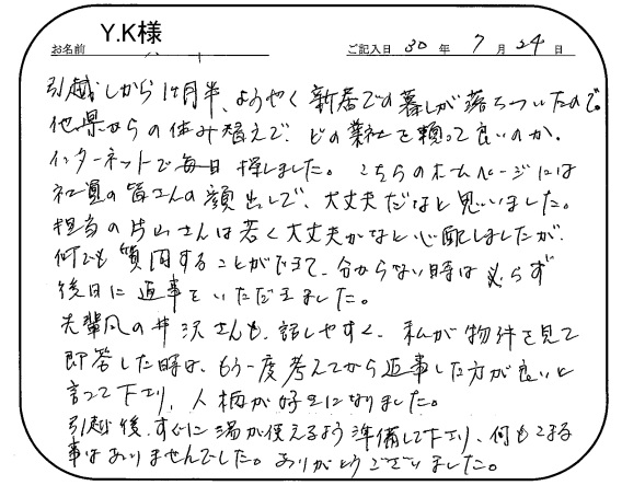 人柄が好きになりました2018年 7月 24日 | <p>Y.K様</p><p>年代:30代</p><p>家族構成:3人家族</p>
