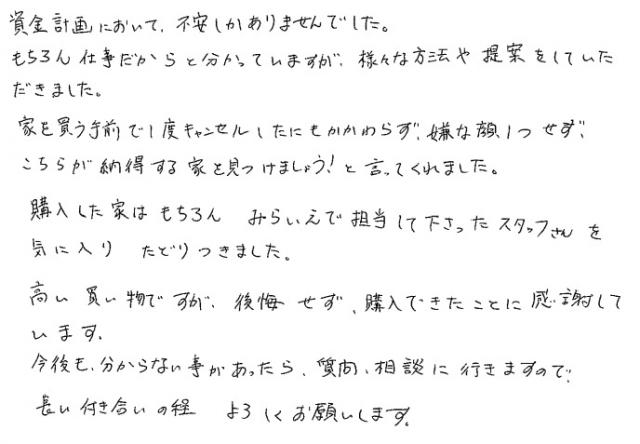 みらいえさんでなければ購入に至っていないと思います2020年 3月 30日 | <p>Y.K様</p><p>年代:30代 </p><p>家族構成:4人家族</p>