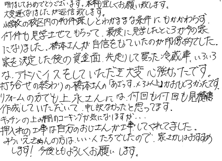 大変心強かったです。2020年 1月 1日 | <p>T.T様</p><p>年代:30代 </p><p>家族構成:4人家族</p>